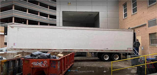 Chiếc xe tải chở thi thể do bác sĩ Colleen Smith ghi lại ở bệnh viện Elmhurst.