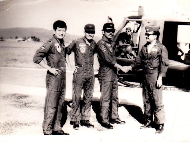 Khi vừa bị pháo kích, khoảng 35 chiếc trực thăng và L.19 tại phi trường đồng một loạt bay lên lánh nạn, vô t́nh 2 tiểu đoàn CSVN đang chuẩn bị tấn công phi trường làm mồi cho trực thăng vơ trang ( Lực lượng CSVN không có súng pḥng không, có lẽ đây là 2 trong số 4 tiểu đoàn địa phương của Tỉnh đội CSVN tại Khánh Ḥa ). V́ có sẵn quá nhiều đạn cho nên các trực thăng rưới đạn như mưa vào khu rừng dọc chân núi chạy song song với phi đạo. Không ai ngờ là quân CSVN nằm chết la liệt trong rừng mà tới chiều tối mới phát hiện được.