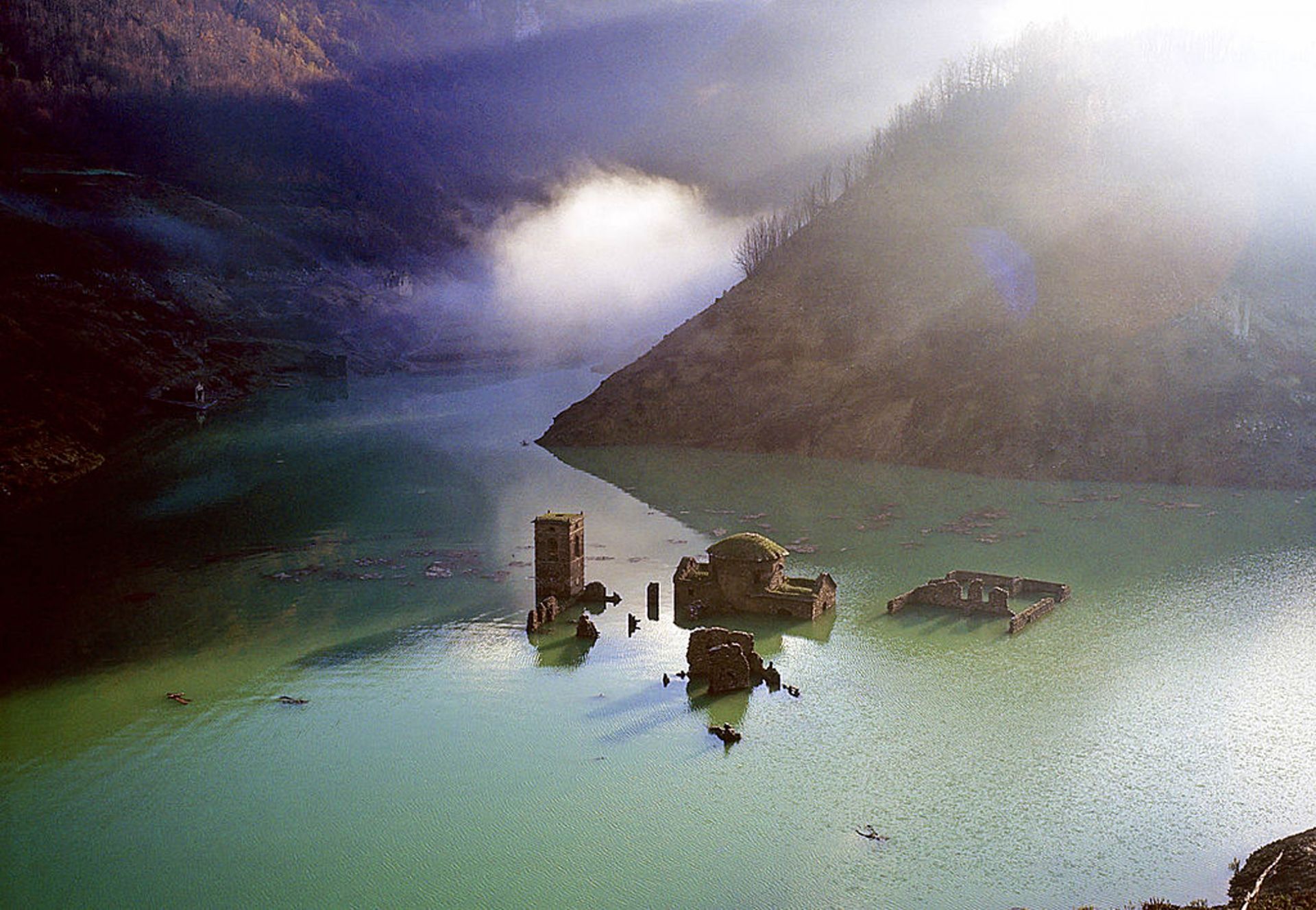 Bức ảnh ngôi đền bị quên lãng ở Lysistrata (Bồ Đào Nha) mô tả bên một ngôi đền hầu như còn nguyên những cấu trúc chi tiết như cột đá, mái vòm bị bỏ hoang bên bờ biển.