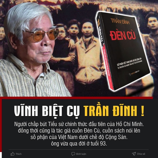 Tác giả Trần Đĩnh, chủ yếu được dư luận đại chúng người Việt trong ngoài nước biết qua cuốn Đèn cù, vừa qua đời ngày 12/5, hưởng thọ 93 tuổi.