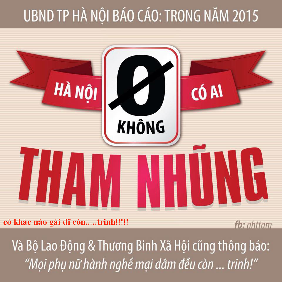 Đúng quá đi chứ :Hà Nội 0(không )có ai không tham nhũng ,tức là cả lũ thằng nào cũng tham nhũng hết.
