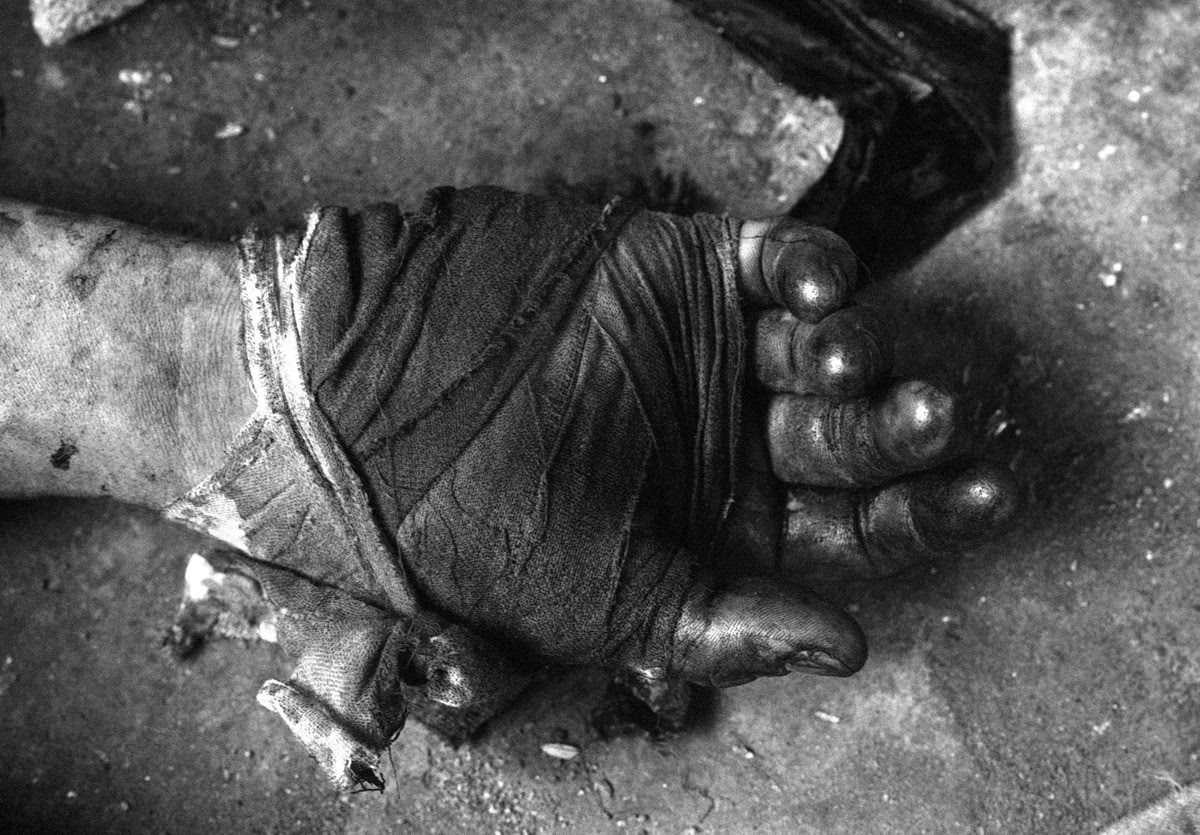 Nhân viên vệ sinh môi trường làm việc tại Công trường Lam Sơn, TP HCM năm 1994. Phía xa là vòng xoay Cây Liễu, thương xá TAX, khách sạn Rex và đường Lê Lợi.