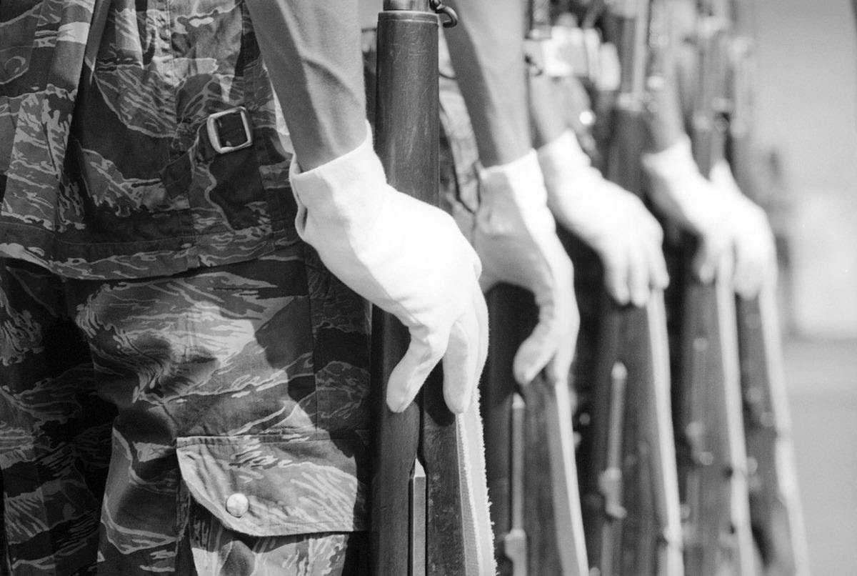 Cảnh ѕáт bảo vệ đường phố trong cuộc bạo loạn ở Sài Gòn năm 1963. Đây là ngã tư Ngô Thời Nhiệm – Bà Huyện Thanh Quan, bìa phải là tháp Chùa Xá Lợi