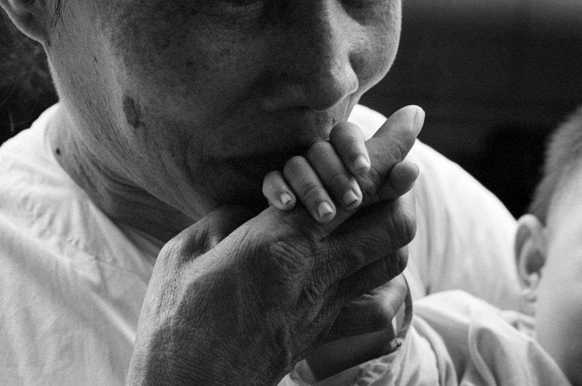Một chiếc ảnh cận cảnh tụng kinh cầu nguyện trước tượng Phật