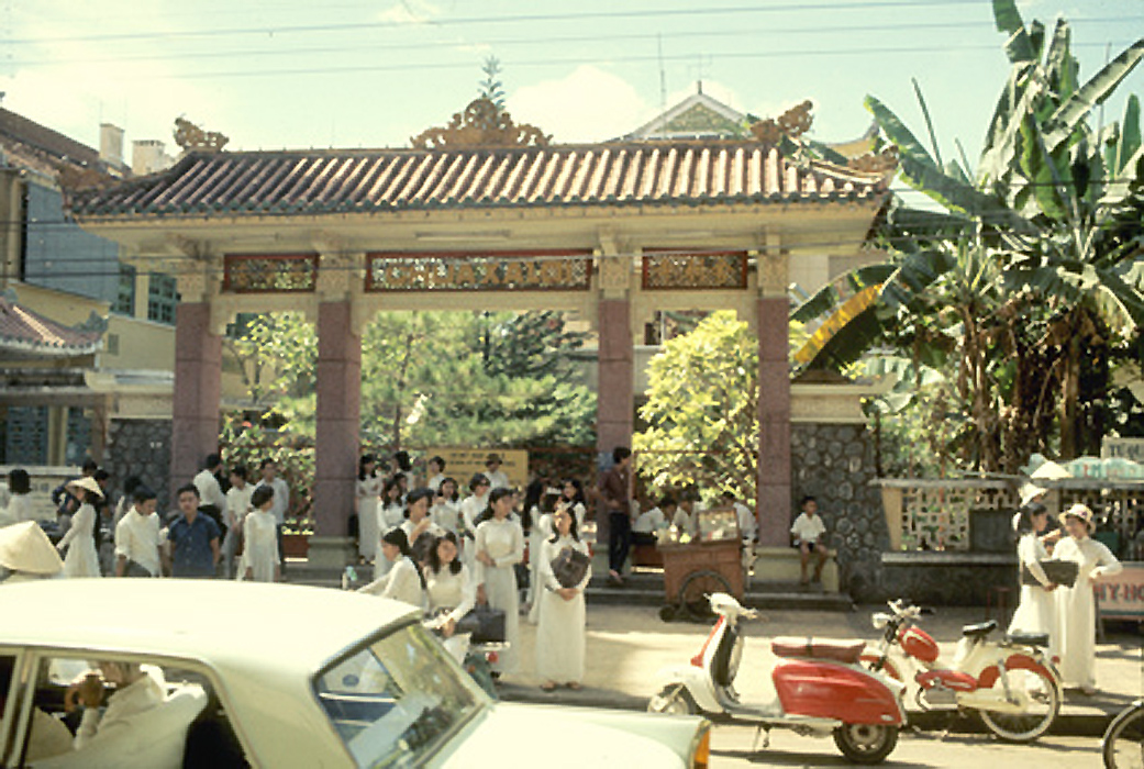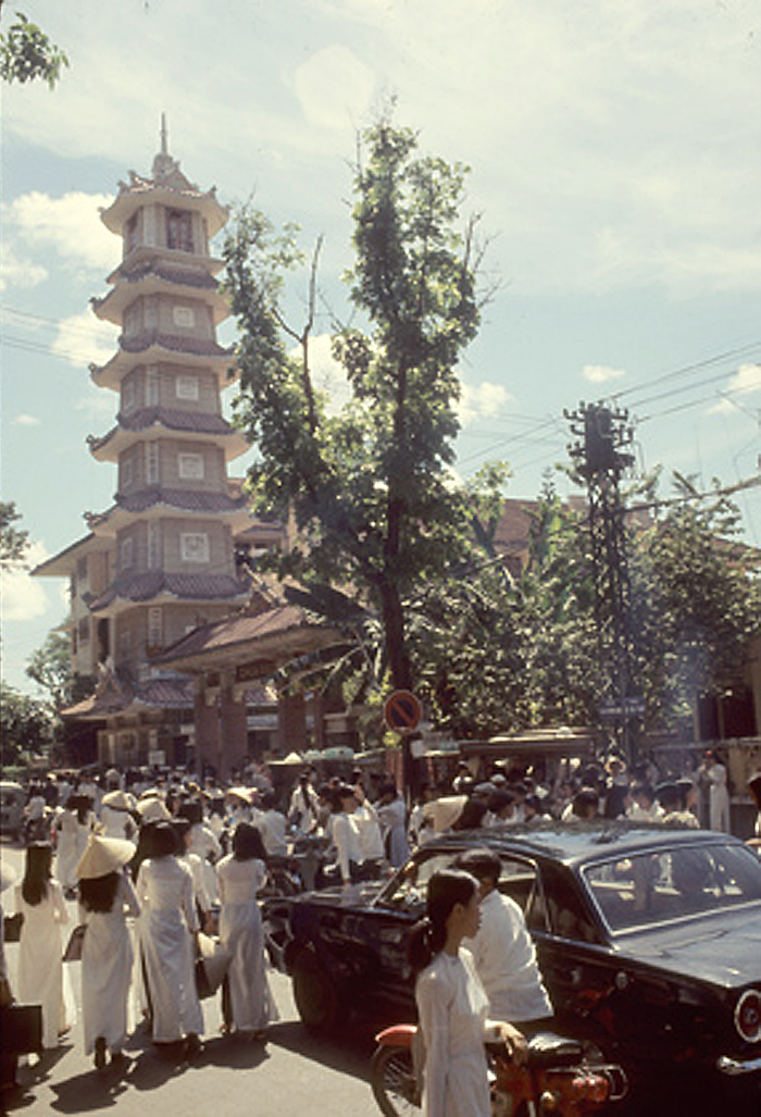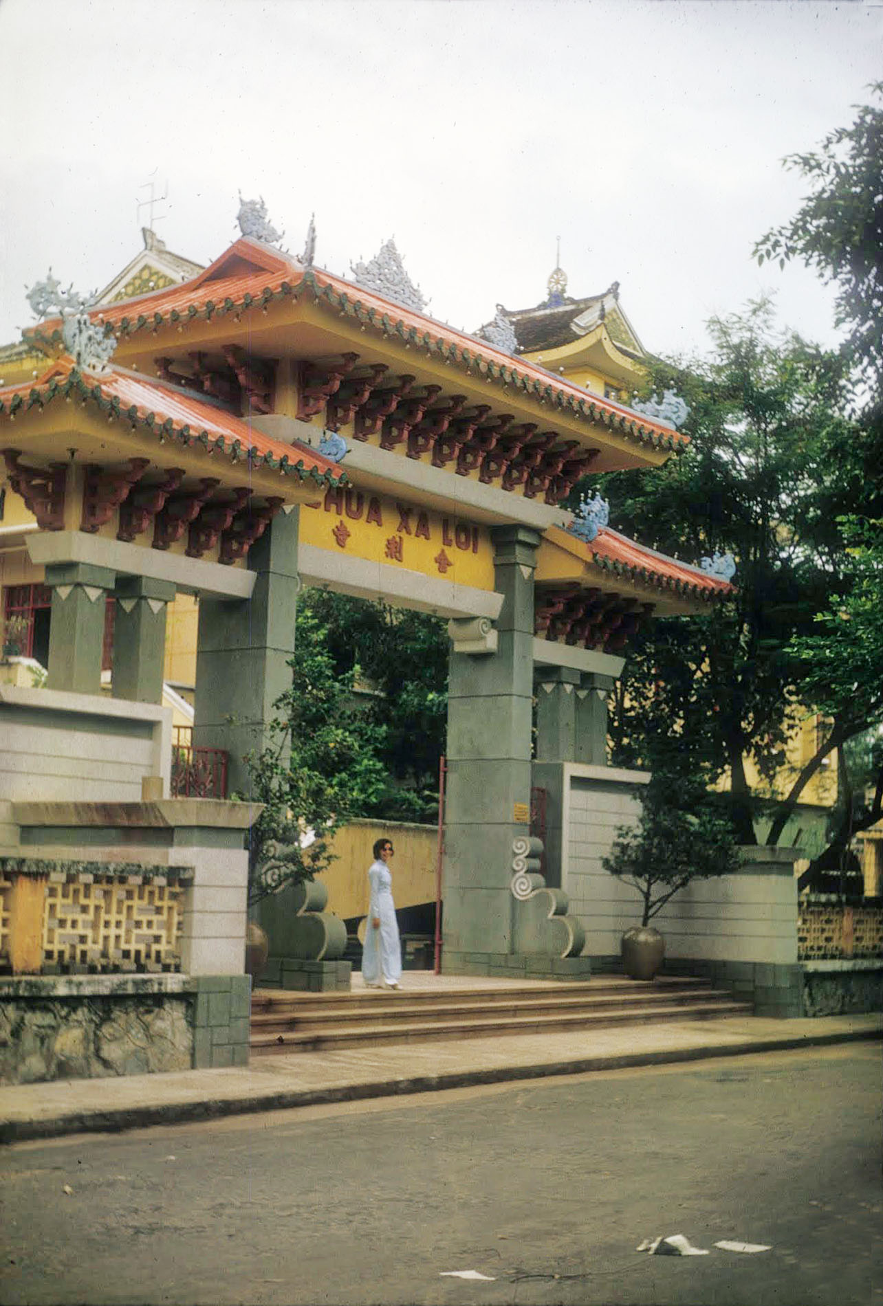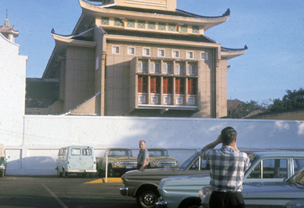 Chùa Xá Lợi nhìn từ bãi đậu xe của cơ quan USOM (United States Operations Mission) của Mỹ trên đường Ngô Thời Nhiệm năm 1970