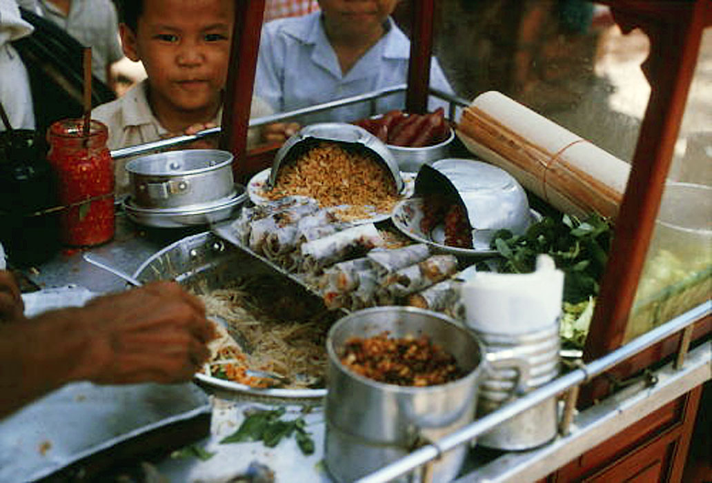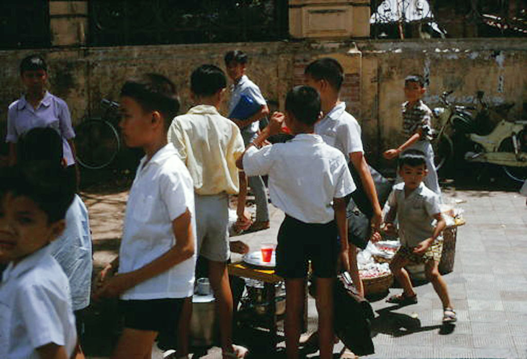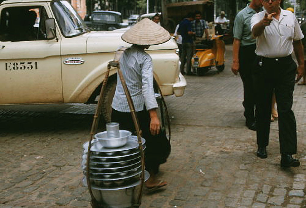 Gánh thạch rau câu trên đường phố Sài Gòn năm 1966 – Có тнể nói đây là loại gánh hàng rong coi lịch sự sạch sẽ nhứt ngày xưa do thạch được đựng sẵn trong chén nhôm nhỏ. Không sợ ăи ché……đã qua sử dụng.