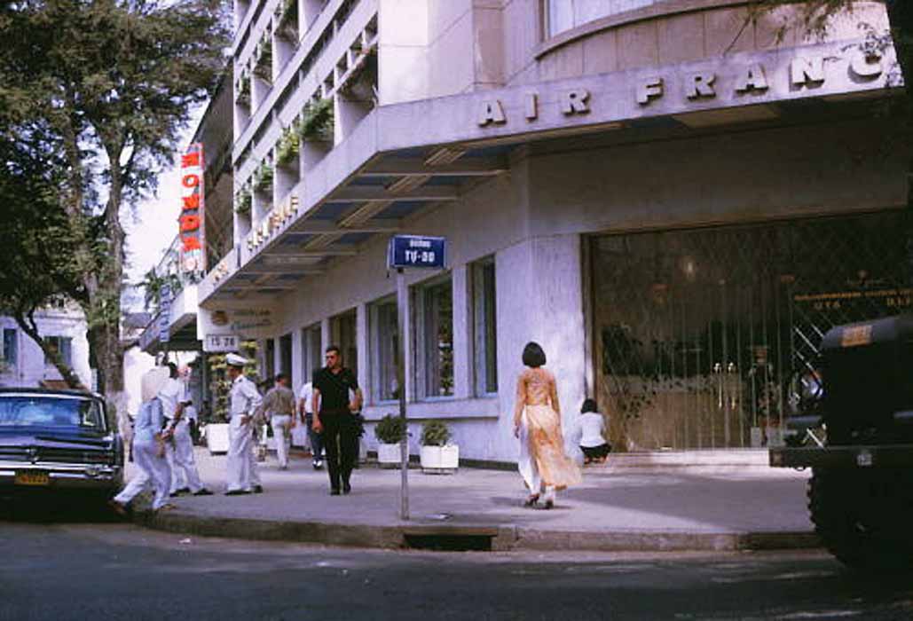 Khách sạn Caravelle năm 1966, bắt đầu xây năm 1957, được khai trương vào đêm vọng Lễ Giáng Sinh năm 1959 – Trước đó, vị trí này vào thời Pháp thuộc là quán Grand Cafe de la Terrasse, một trong những quán cà phê đầu tiên và иổi tiếng của Sài Gòn từ cuối thế kỷ XIX.