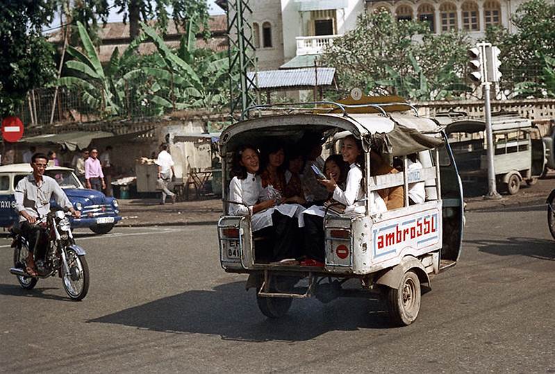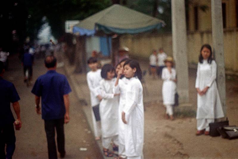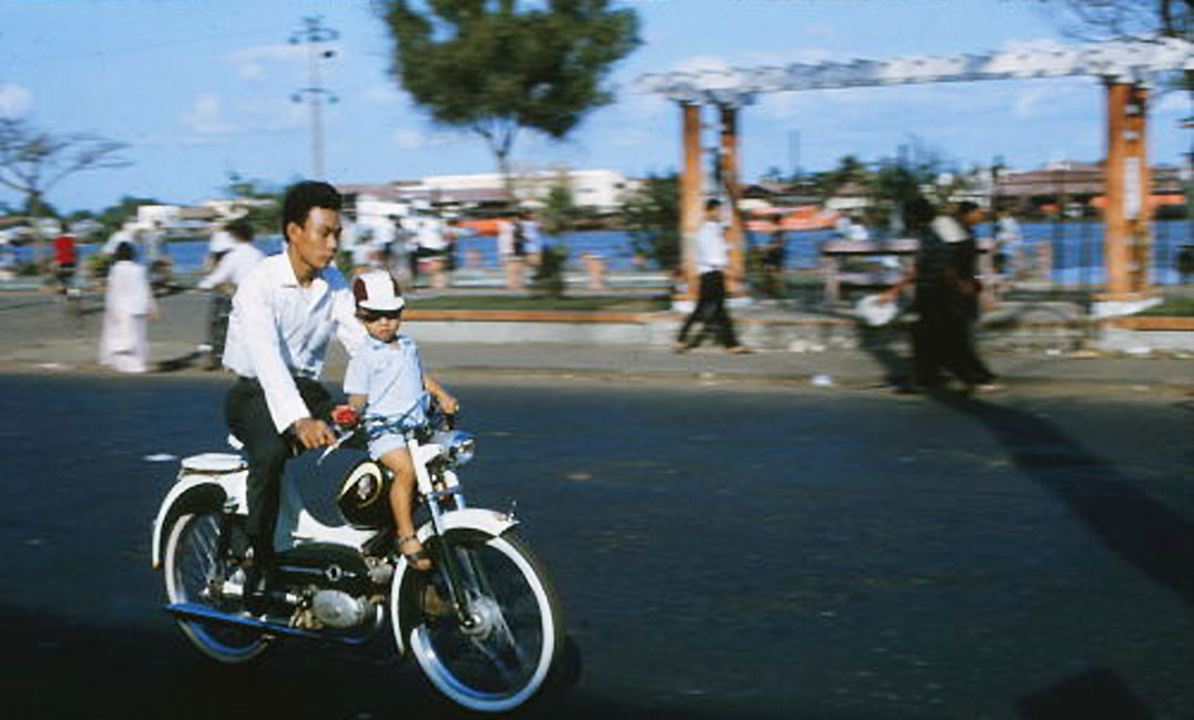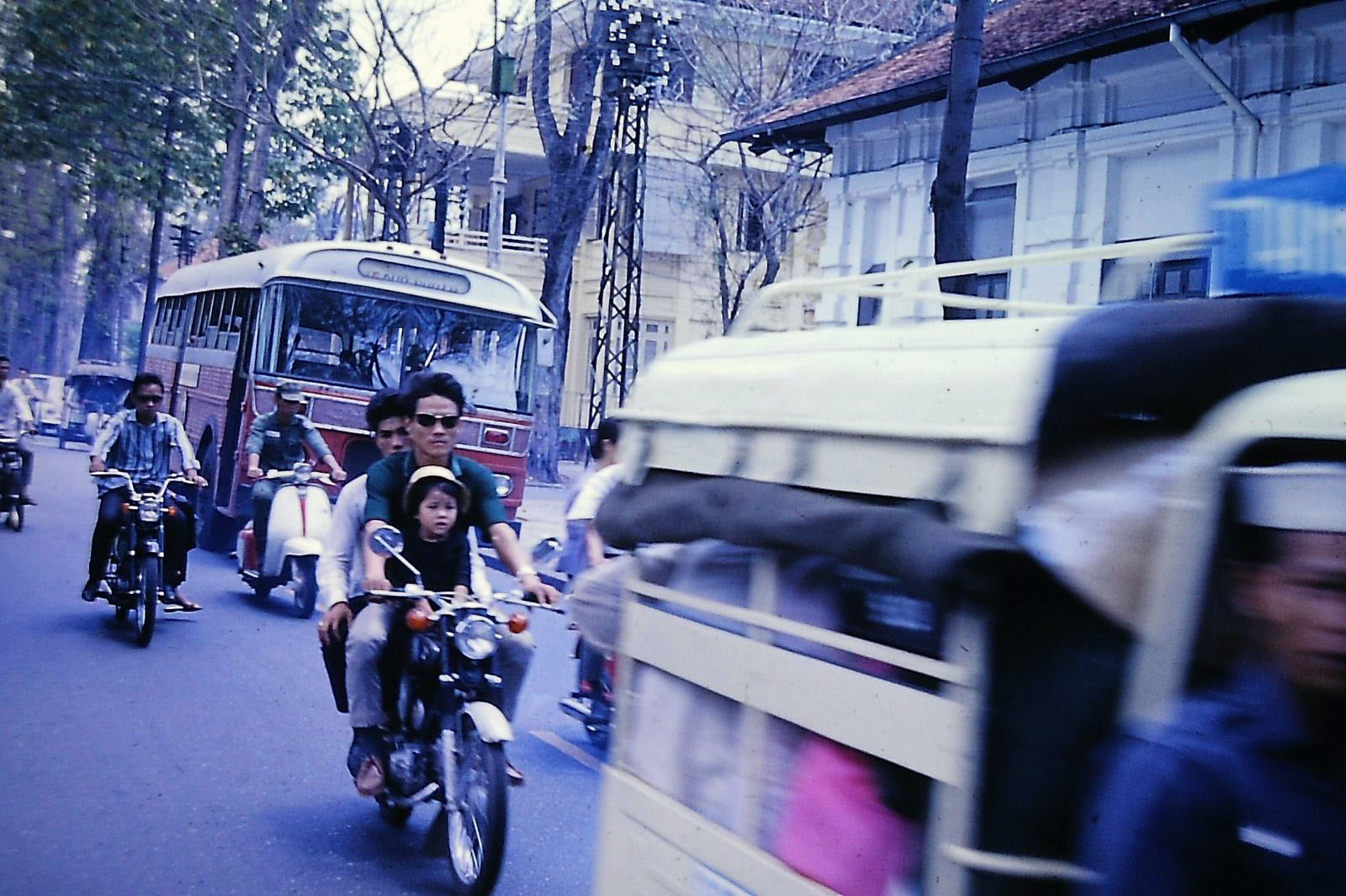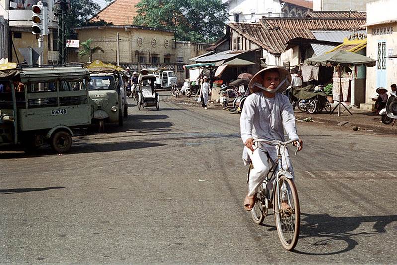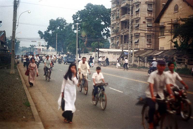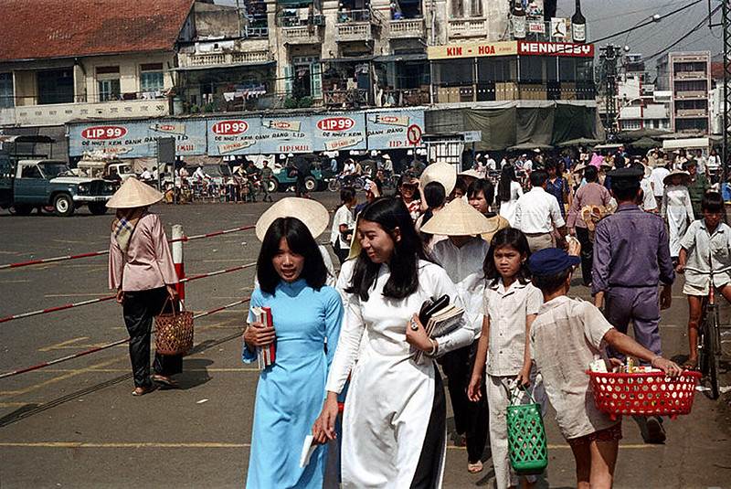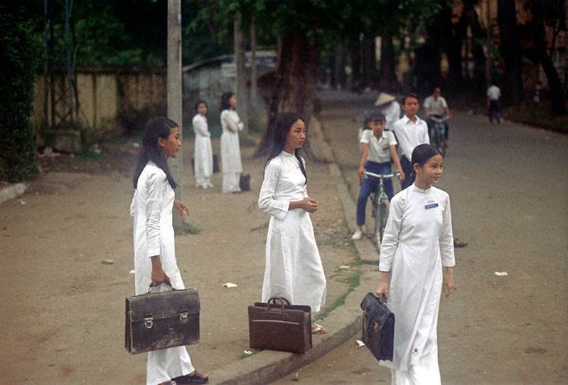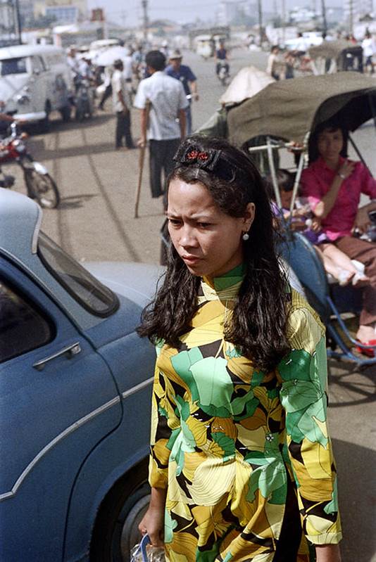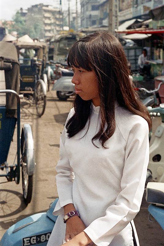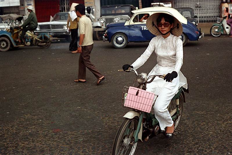 Cô gái với áo dài trắng láy xe trên đường phố Sài Gòn năm 1973