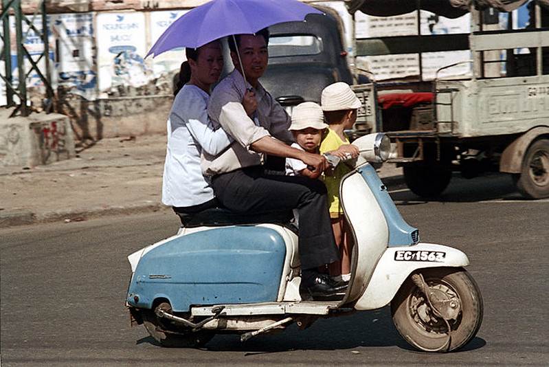 Đôi vợ chồng cùng hai con nhỏ trên chiếc máy ngày ấy chạy dọc giao lộ Trần Hưng Đạo-Phạm Ngũ Lão