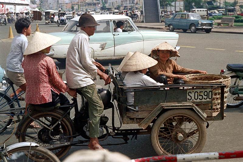 Xe thổ mộ trên đường phố Sài Gòn năm 1965 – Đây là loại phương tiện đi lại phổ biến ở vùng Sài Gòn-Gia Định của Việt Nam vào những năm 50 của thế kỷ XIX.
