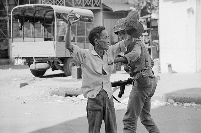 05 tháng 2/1968 : Một người lính VNCH đang lục soát tìm vũ khí dấu