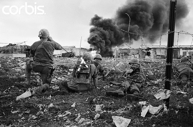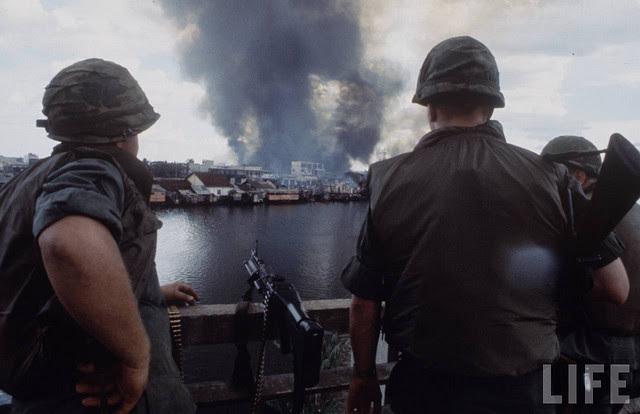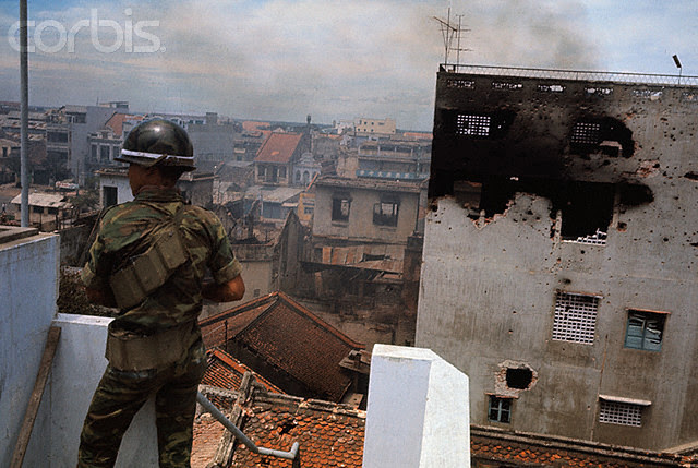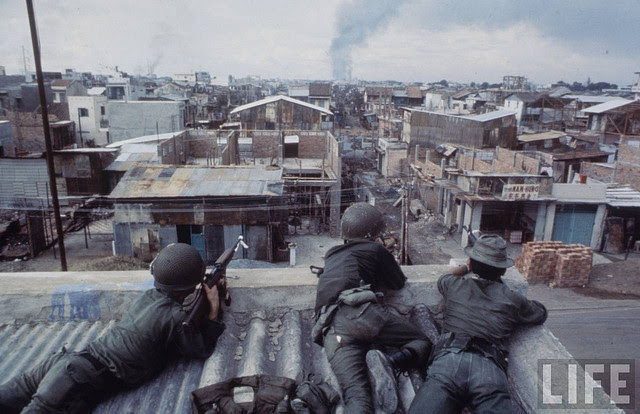 10 May 1968, Cholon, Saigon: Một toán lính đang gọi không quân yểm trợkhi vấp phải hỏa lực dữ dội của quân VC