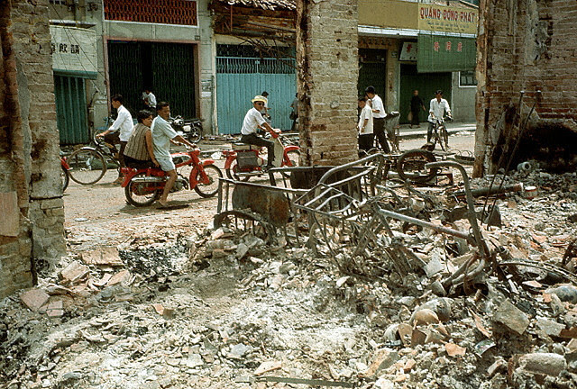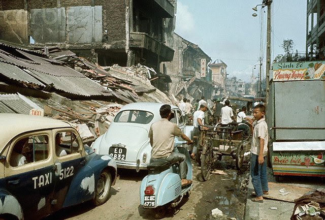 10 Jun 1968, Cholon, Saigon: Người dân dừng xe lại nhìn ngôi nhà to trong khu phố
