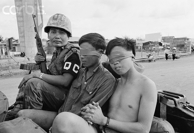 Một thanh niên bị lính Mỹ thuộc Sư đoàn bộ binh số 9 áp giải ở ngoại ô Sài Gòn, 1968. Ảnh: Philip Jones Griffiths/Magnum.