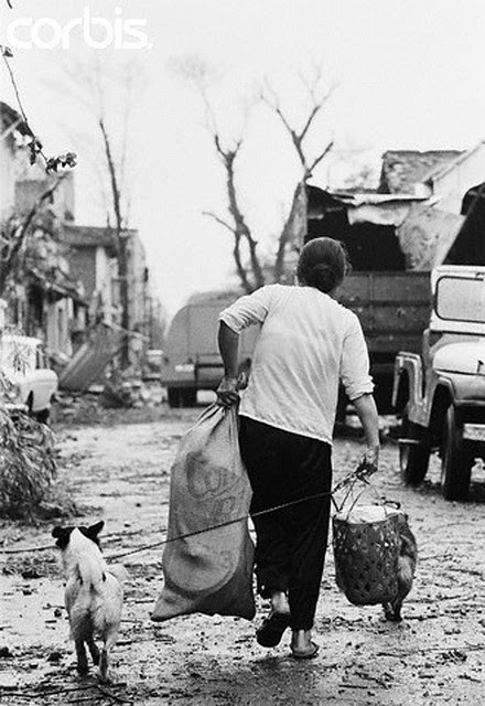 Người mẹ tật nguyền tay ôm đứa con nhỏ lê lết trên đường với mông muốn đi theo những người dân tị nạn. Hình ảnh này nức nở và xót thương biết là bao.