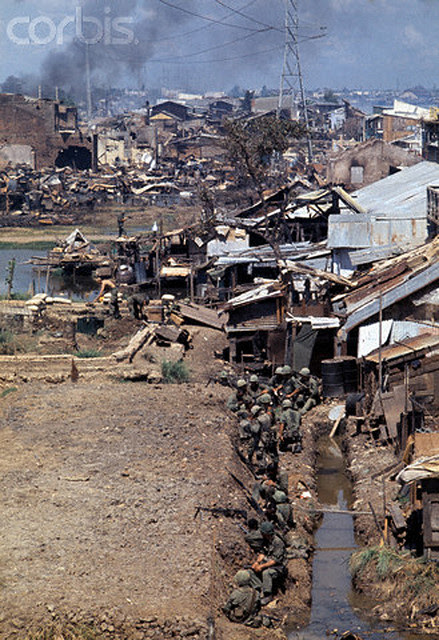 Lính Mỹ thuộc Sư đoàn bộ binh số 9 tác chiến trên đường phố Sài Gòn, trong chiến sự Mậu Thân 1968. Ảnh: Philip Jones Griffiths/Magnum.