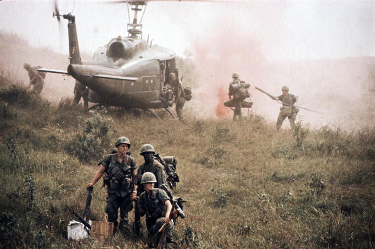 Lính Mỹ tiến hành chiến dịch ở thung lũng A Sầu (tỉnh Thừa Thiên) năm 1968. Đây là nơi 2 năm trước đã diễn ra trận Đồi Thịt Băm nổi tiếng, với những thiệt hại nặng nề của lính Mỹ. Ảnh: Philip Jones Griffiths/Magnum.