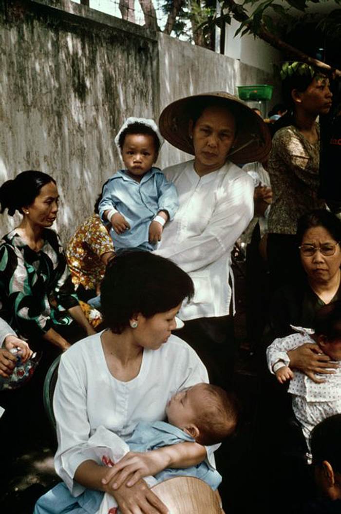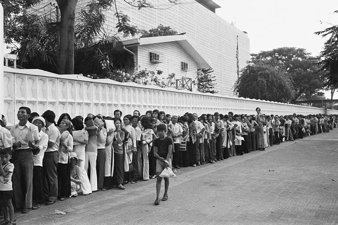 Dòng người đang xếp hàng dài chờ đợi ở Đại sứ quán Mỹ ở Sài Gòn vào những ngày cuối cùng của cuộc Chiến Tranh Việt Nam khoảng cuối tháng 4 năm 1975.
