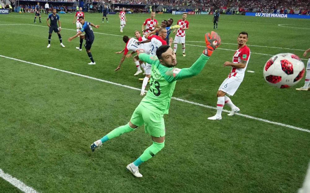 Goal ! Phút 69, thủ môn Pháp chơi bóng ở dưới, Mario Mandzukic lao vào sút trúng bóng