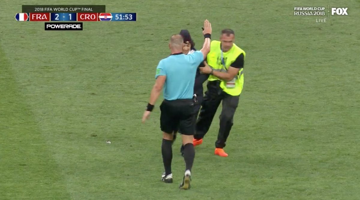 Trận đấu dừng do một vài cổ động viên chạy ra sân.