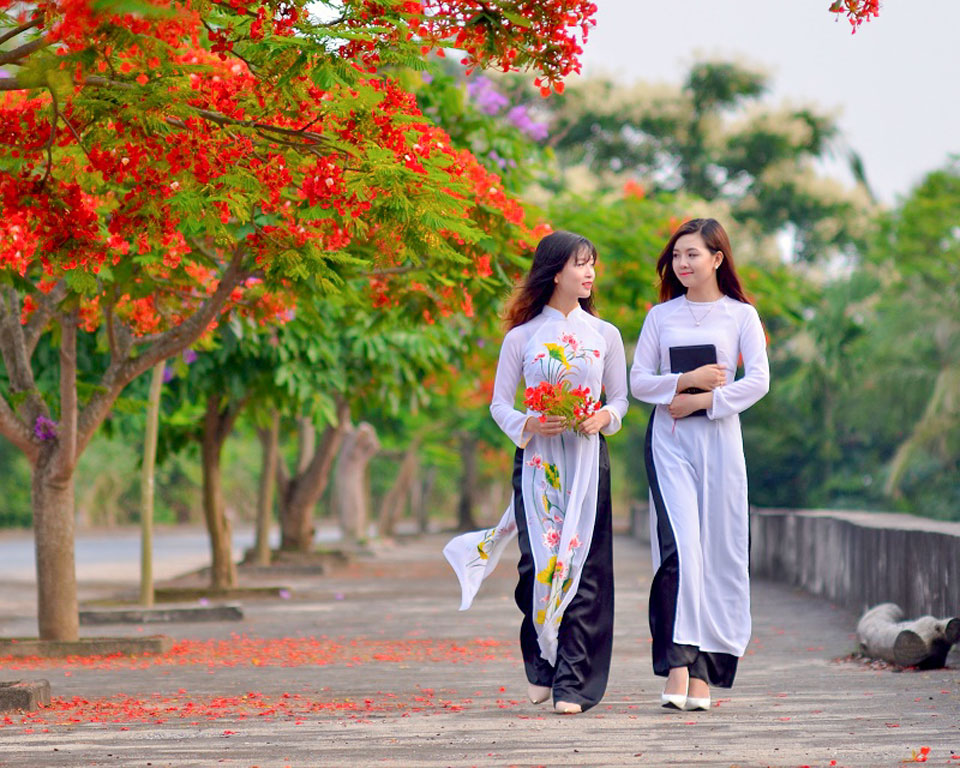 Áo dài trắng Tóc Nàng xỏa ngang vai
