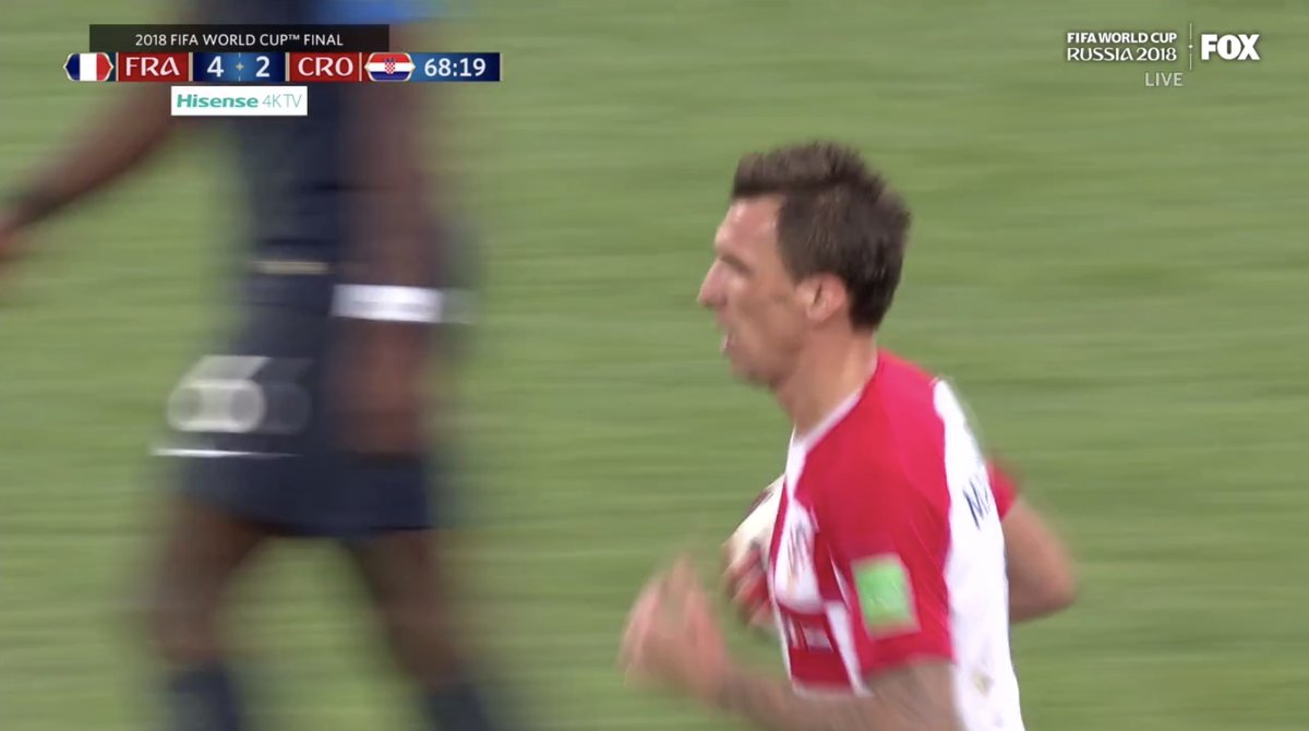 Goal ! Phút 69, thủ môn Pháp chơi bóng ở dưới, Mario Mandzukic lao vào sút trúng bóng