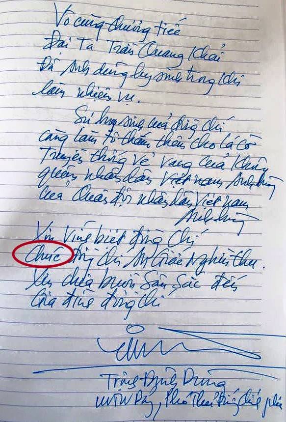 Phó thủ tướng Trịnh Đình Dũng ghi trong sổ tang vĩnh biệt phi công Khải: CHÚC đồng chí an giấc nghìn thu