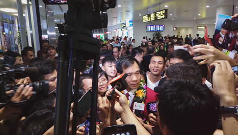 Màn chào đón của dân Việt khi Hoàng Xuân Vinh vừa bước xuống sân bay nội bài
