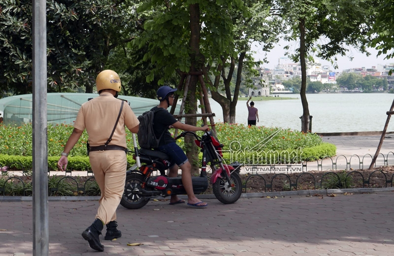 Một học sinh đi xe máy điện lên vỉa hè để săn Pokemon