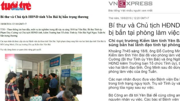 Trang mạng các báo như VnExpress, Người Lao Động, Tiền Phong, đã đưa tin tương tự rằng hai lãnh đạo tỉnh bị bắn “trọng thương”. Trong khi đó, BBC cũng nhận được thông tin cả ba người đã tử vong.