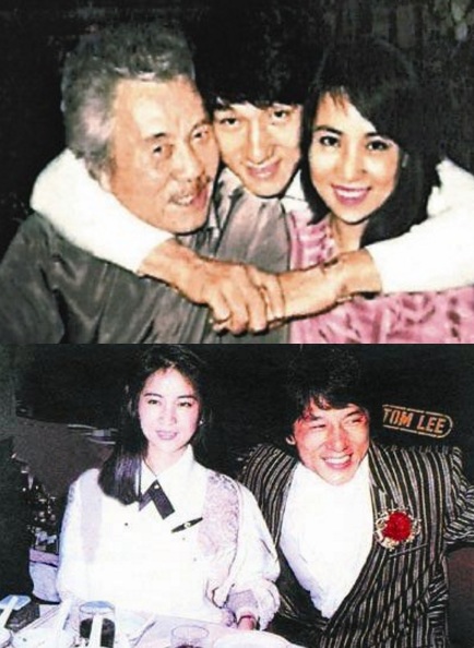 Cặp đôi trời trẻ và bức hình chụp chung cha đẻ Thành Long (ảnh trên).
