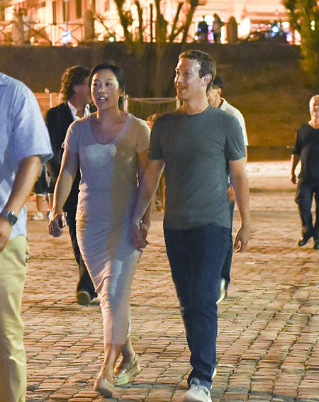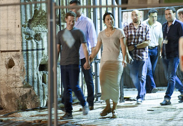 Là người giàu thứ 7 trên thế giới nhưng Mark Zuckerberg dường như vẫn chỉ thích tận hưởng những thú vui giản dị của cuộc sống. Tối 29/8, nhà sáng lập Facebook được nhìn thấy nắm tay người vợ yêu quý Priscilla đi dạo ở thành Rome.
