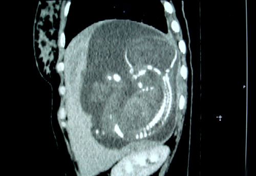 Một thai phụ nhập viện Từ Dũ trong tình trạng thai nhi nằm ở giữa thùy của lá gan bên trái thay vì nằm trong tử cung của người mẹ. Các bác sĩ đã phải tiến hành phẫu thuật nội soi để bóc tách khối thai nằm ở vị trí bất thường như thế.