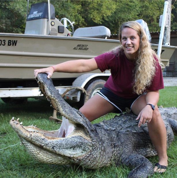 Tiffany chụp ảnh cùng con cá sấu dài nhất từng bị bắt ở bang Mississippi