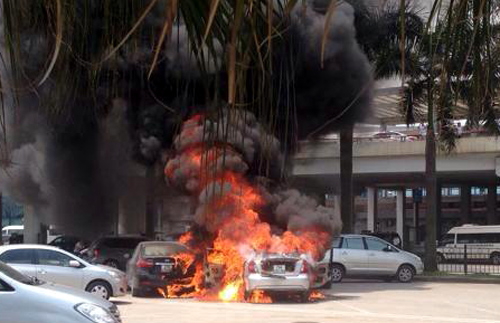 Old  Default Video: Xe hơi bốc cháy ở sân bay Nội Bài như trong phim hành động Mỹ