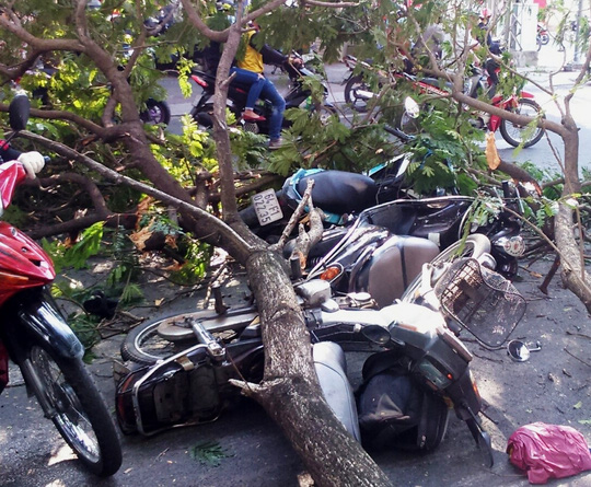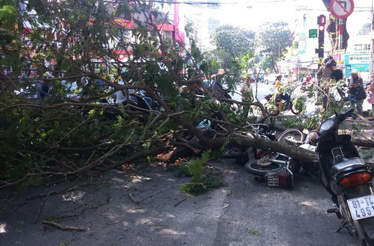 Old  Default Sài gòn: Nhánh cây đột nhiên gãy rơi đè 3 người lăn quay giữa đường.