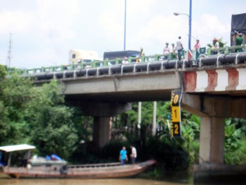 Công an và dân phòng nơi đây nghe người dân báo đã tới ngay để ngăn chặn vụ nhảy, thậm chí chuẩn bị cả một ghe để vớt nếu người này nhảy xuống.