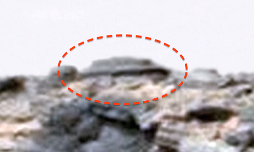 Trong video ghép từ ảnh chụp của robot Curiosity, vật thể có màu sẫm hơn các tảng đá khác, h́nh tṛn và có phần giữa hơi nhô lên như một chiếc đĩa bay. Scott Waring, biên tập viên trang UFO Sightings Daily, cho rằng vật thể này nhiều khả năng là bằng chứng về sự tồn tại của người ngoài hành tinh. Nó có thể là đĩa bay đang đậu trên mặt đất hoặc một công tŕnh được xây dựng trên cao để cho tầm quan sát tốt hơn.