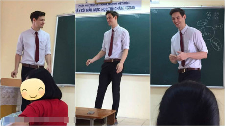VBF - Chẳng biết thày dạy môn ngoại ngữ gì và từ đâu đến, nhưng các học trò đã chết mê chết mệt. Quả thật gần đây Việt Nam đang rộ mốt học thày nước ngoài, thường là thầy có tiếng bản xử bằng tiếng Anh. Tuy nhiên mới đây Bộ giáo dục bắt học cả tiếng Nga thì có thể sắp tới người Nga cũng đến đây dạy học. Nhưng dường như việc này không quan trọng với học sinh mà quan trọng thày đẹp trai mới thu hút học sinh học.