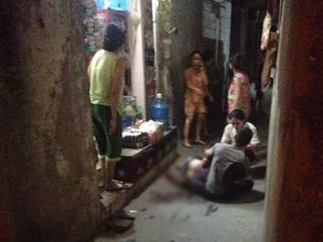 Một nạn nhân bị chém gục ở ngõ 154 phố Chợ Khâm Thiên. (Ảnh Beat)