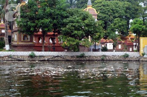 Khu vực cạnh chùa Trấn Quốc cá chết nổi rải rác.