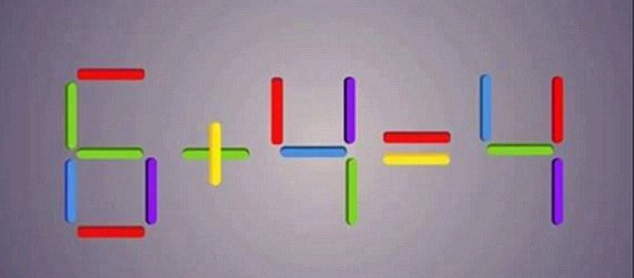 Câu đố này bắt bạn phải di chuyển một que diêm trong phép tính. Mới đầu nhìn có vẻ rất đơn giản một học sinh cấp 1 cũng có thể làm được. Tuy nhiên, để làm ra hết các đáp án của nó thì chỉ dành cho thiên tài thôi.