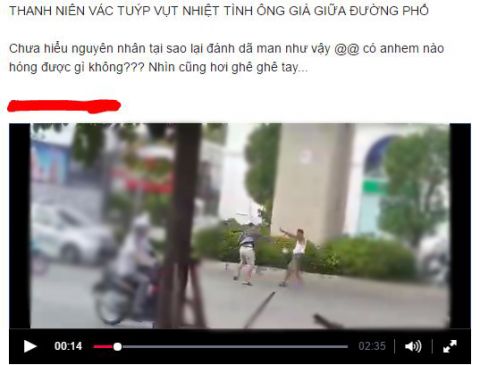 Không biết thanh niên và cụ ông có quan hệ thế nào với nhau mà người thanh niên cầm ống tuýp nước cứ thế là phang cụ ông ở giữa đường Ngã Tư Sở Hà Nội. Lạ hơ nữa là mọi người cứ "trơ mắt ếch" ra nhìn mà không một ai can thiệp. Đạo đức con người đã xuống cấp trầm trọng đến mức này ư?
