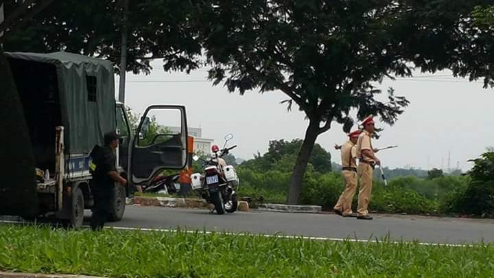 Công an đang bao vây cả khu dân cư, họ bắt đầu ngăn chặn không cho ai vào từ ngỏ trạm thu phí T3 trên QL 51, khi có xe chạy tới họ bắt quay đầu xe.