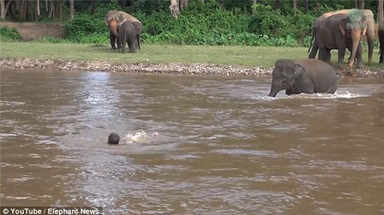Người huấn luyện Darrick Thomson, 42 tuổi, có mối quan hệ thân thiết với chú voi nhỏ tên Kham Lha sau khi nó được giải cứu khỏi ngành du lịch và đưa về nuôi tại khu bảo tồn voi ở tỉnh Chiang Mai, Thái Lan, hồi năm ngoái. Để chứng tỏ cho mọi người thấy tình bạn đặc biệt của ông với chú voi Kham Lha, Darrick đã giả vờ bị đuối nước dưới sông chảy xiết và kêu cứu. Ngay lập tức, con voi nhỏ đã lao xuống sông và bơi về phía người huấn luyện của nó.