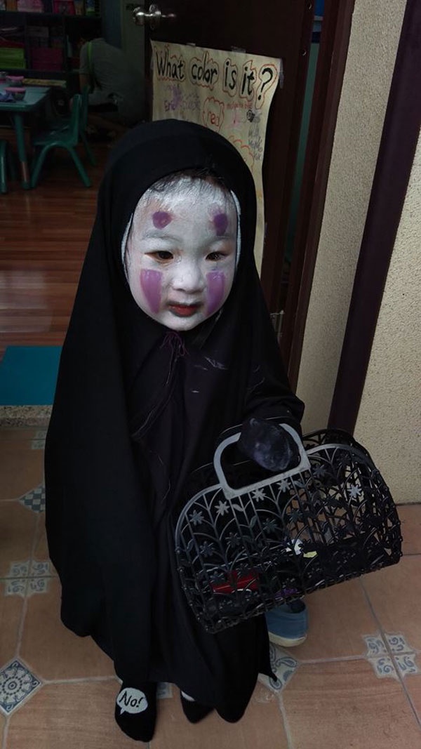 Lại một mùa Halloween nữa lại qua, đánh dấu chỉ còn 2 tháng nữa là cư dân toàn cầu sẽ chào đón Giáng Sinh an lành. Trong mùa Halloween này, cư dân mạng truyền tay nhau hình ảnh một nhóc tì hóa thân thành Quỷ vô diện. Khi bỏ lớp trang điểm ra, ai cũng không khỏi xuýt xoa về độ cute đáng yêu của cô bé này.