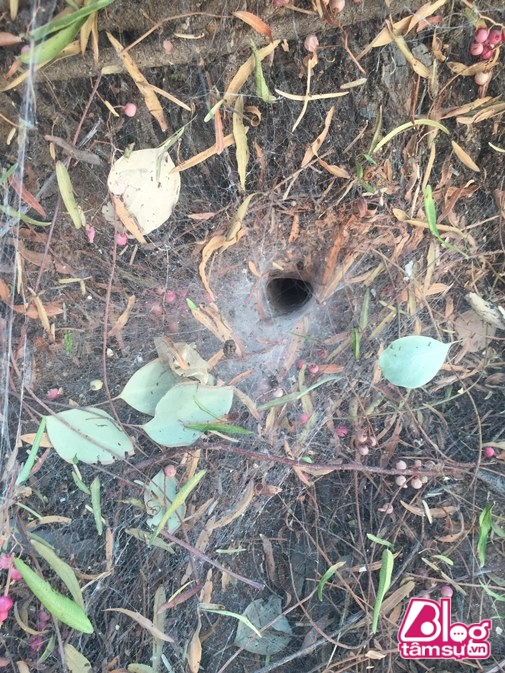 Và ông cũng đã thực hiện điều đã hứa để rồi phát hiện ra một con nhện mạng phễu có kích thước khá lớn ở bên trong. Chúng thường giăng tơ ngay trước tổ của mình để bẫy mồi.