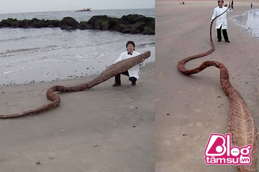 Các ngư dân tại Nhật Bản đã hoảng sợ khi bất ngờ phát hiện ra một con quái thú kỳ lạ bên bờ biển. Các cơ quan chức năng đã có mặt tại hiện trường để kiểm tra, khi lại gần thì họ phát hiện đây chỉ là phần da đã lột của con quái thú. Tuy nhiên với hình dáng đáng sợ và phần đầu “không giống ai” thì nó vẫn khiến nhiều người kinh hãi.