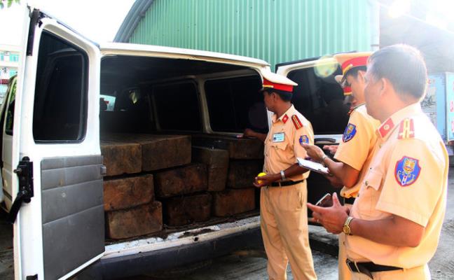 CSGT tạm giữ chiếc ô tô cùng số gỗ lậu trên xe
