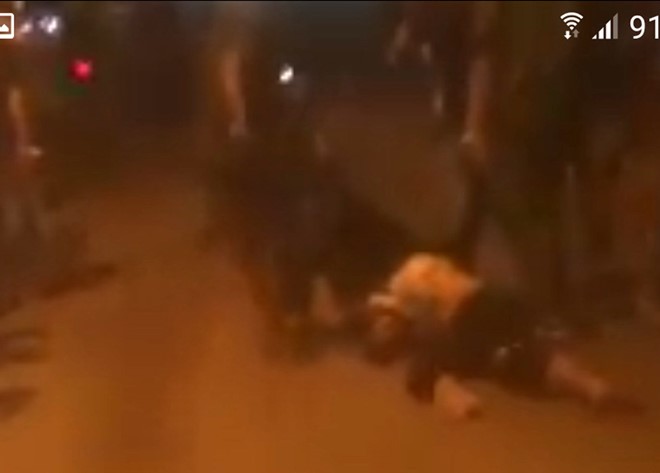 Phạm Văn Trường bị lực lượng làm nhiệm vụ kéo lê về Công an thị trấn An Lạc Thôn, huyện Kế Sách (Sóc Trăng).